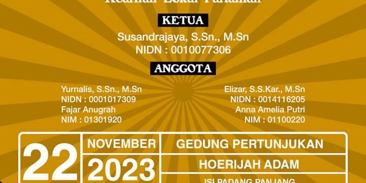 Nov222023Event Category: Event22-November-2023 Share This Article Share on FacebookShare on Facebook Share on XShare on X Pin itShare on Pinterest Share on LinkedInShare on LinkedIn Author: Post navigationPreviousPrevious post:Pitunang dan Tanah Batikam ditampilkan oleh Indra Ariffin di Kota KelahirannyaNextNext post:“Melodi Budaya : Panggung Inspirasi dari Fakultas Seni Pertunjukan ISI Padangpanjang” di Teluk Kuantan, Kab. Kuantan Singingi Provinsi RiauRelated PostsOTA RABU MALAM : Menyulut Inspirasi dalam Diskusi Seni Karawitan tentang Home Studio Recording06-June-2024Apresiasi Dan Kolaborasi Mahasiswa Seni26-January-2023ANNIVERSARY15-November-2022Ota Rabu Malam12-October-2022Bentuk Penyajian Musik Dambus Oleh Sanggar Bambusa Desa Payung Kabupaten Bangka Selatan30-November-2021Musik Tari Adok di Nagari Koto Sani Kecamatan X Koto Singkarak Kabupaten Solok20-July-2021